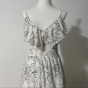 This beautiful floral maxi dress is very flowy and is perfect for the spring or summer. This dress is short from the front and long from the back. Dress has a small red stain almost unnoticeable on the v-neck part of the dress. See images. Size XS.
