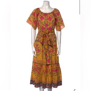 Rhode cotton maxi dress with pink floral patterns. Has belt, short sleeves and a flowing skirt. Very good condition