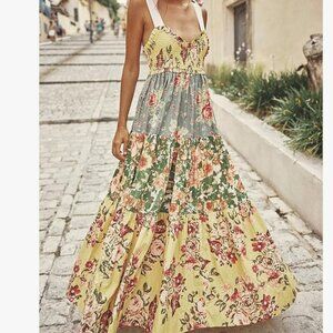 Embrace elegance with this stunning floral maxi dress. Featuring a beautiful blend of green and yellow hues, it's perfect for any occasion.
