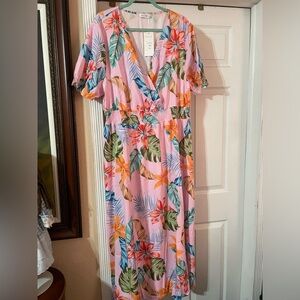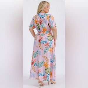 Embrace elegance with this stunning floral maxi dress. Featuring a vibrant pink and orange design, this dress is perfect for any occasion. Enjoy the comfort and style it brings to your wardrobe.