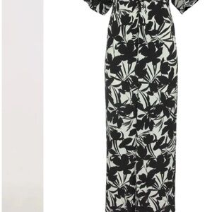 Elegant black and white floral dress. Perfect for any occasion. silhouette with a twist-front detail at the waist to flatter the shape.