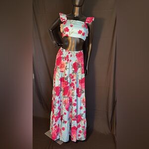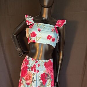 Embrace elegance with this stunning floral maxi skirt. Featuring a vibrant pink floral pattern on a crisp white background, this skirt is perfect for any occasion. Pair it with your favorite top for a chic look.
