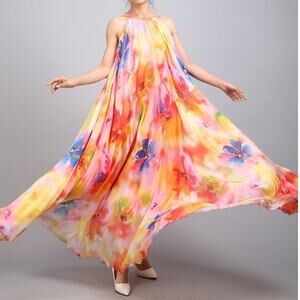 Floral Medeshe Chiffon Flowy sleevless maxi summer dress size large