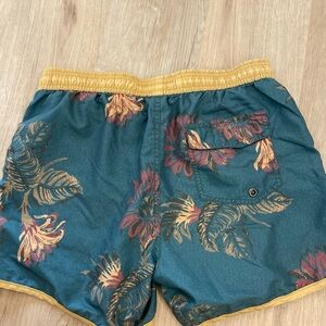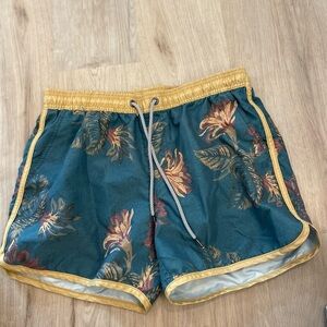 Dive into style with these floral men's swim shorts. Featuring a vibrant teal and yellow design, these shorts are perfect for a day at the beach or pool.