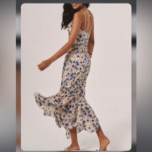 Embrace elegance with this stunning floral blue midi dress. Perfect for any occasion, its design offers both style and comfort.