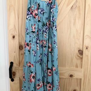 Floral midi dress, only worn twice. Adjustable shoulder and waist tightening straps in the back. Slit in the front for breathability, buttons also adjust in the chest area.