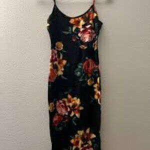 ladies Medium sleeveless dress with vibrant floral print. Form fitting with a slit up the center back. knee length. adjustable spagetti straps,Y2K,hipster,Gen Z girly artsy festival maxi