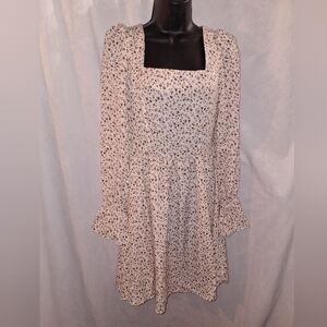 Embrace elegance with this floral mini dress, featuring a stylish square neckline. Perfect for any occasion. babydoll look theres no size please do measurements pit to pit size is 18" top of shoulder to bottom hem is 35" Bundle more items for bigger deals Bin-145