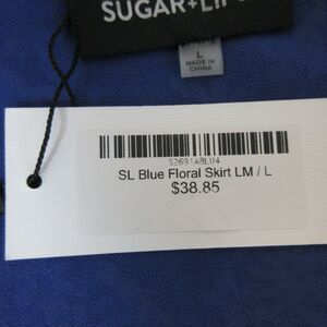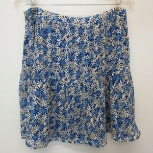Floral Mini Skirt Size Large Blue Ruffle Lined Zipper Feminine Flowy Casual NWT