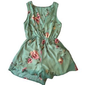 Floral Mint Green Lined Short & Bodice/ Sheer Back Romper USA Made 🇺🇸 Medium
