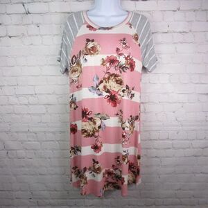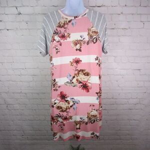 Size medium mixed floral print striped t shirt dress. Boutique item.