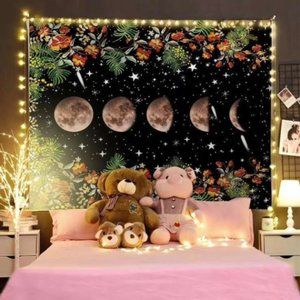 Floral Moon Phase Tapestry | Boho Home Aesthetic, Hippie Bohemian Tapestries