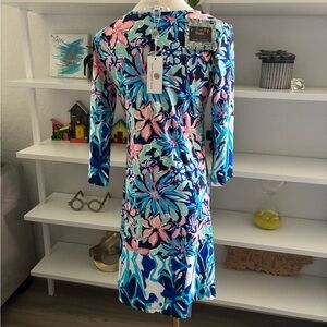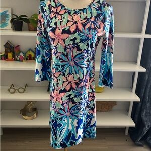 Vibrant floral dress with a mix of colors. Perfect for any occasion.