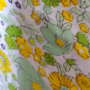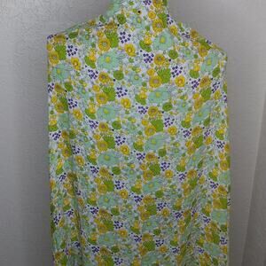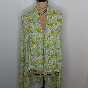 Floral multicolored scarf with fringe hems. Signs of wear: small pulls in fabric (pic 4-5).