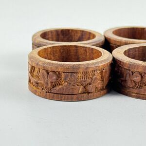 Floral Napkin Rings Carved Wood Set of 6 Made in India