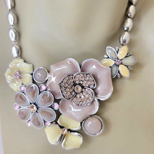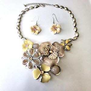 Floral Necklace Enamel Statement Necklace and Earrings Set