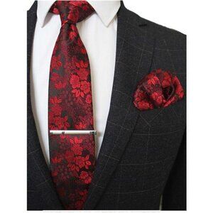 Floral Necktie and Pocket Square Tie Clip Sets for Men