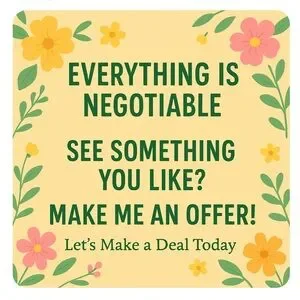Charming sign with floral design and negotiation message. Perfect for making offers.
