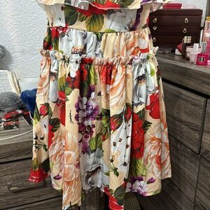Pre owned. Size Large. Waist 30, Bust 37. Fits L/XL Only flaw is a color transfer on the interior shown in pics but doesn't affect the overall quality of the dress. Worn once in Hawaii. Similar to designer dee n geeee.
