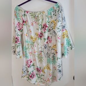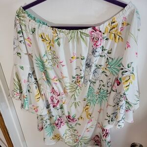 Floral Off-Shoulder Blouse - White with Pink and Green Accents