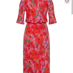 Embrace elegance with this stunning floral off-shoulder maxi dress. Perfect for any occasion, its vibrant red hue and floral pattern make a bold statement. Enjoy the comfort and style of this must-have piece in your wardrobe.