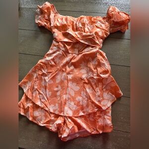 New without tags gorgeous off-shoulder romper with floral print. Features ruffle details and a flattering fit. perfect for spring and summer.