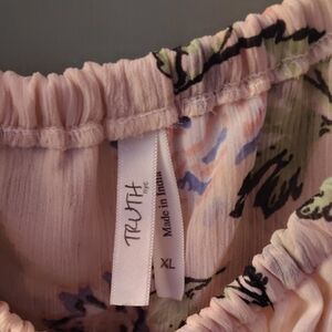 Embrace elegance with this floral off-shoulder ruffle crop top. Perfect for any occasion, this pink top features delicate floral patterns. A must-have addition to your wardrobe.