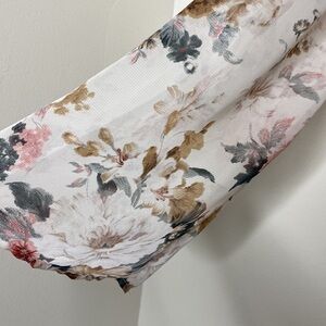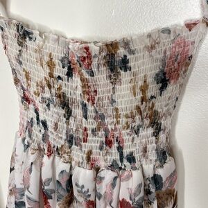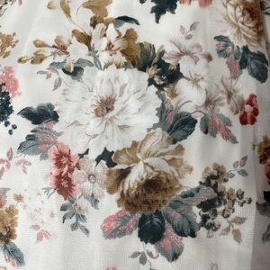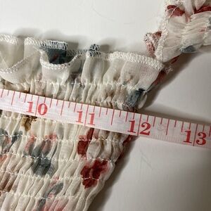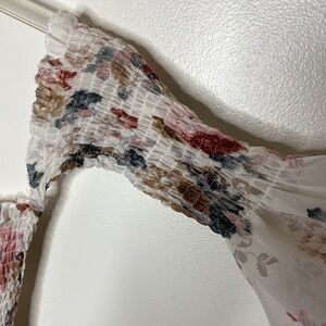 Floral Off-Shoulder Smocked Midi Dress With Sheer Sleeves Size M