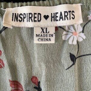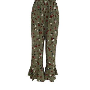 Step into a garden of elegance with this charming Inspired Hearts olive green jumpsuit. Adorned with delicate floral prints, it features spaghetti straps, a cinched waist, and playful ruffle hems. The button detail adds a touch of rustic charm, making it a delightful addition to any wardrobe.