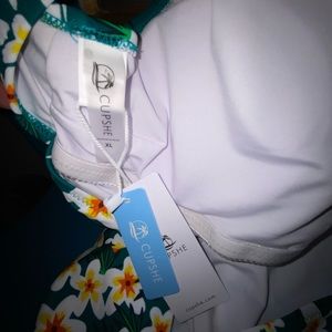 Dive into summer with this stylish floral one-piece swimsuit. Featuring a vibrant green background adorned with white and yellow flowers, this swimsuit is perfect for a day at the beach or pool.