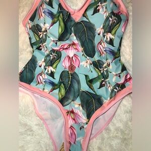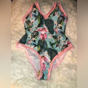 Floral One-Piece Swimsuit with Pink Trim set size XL