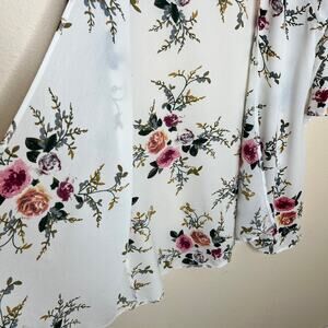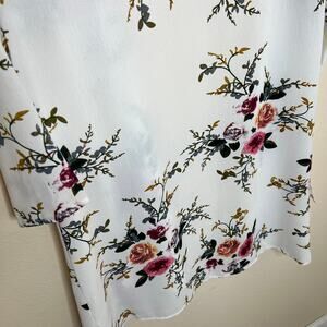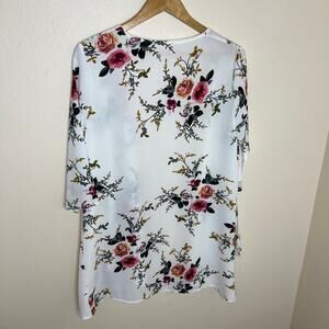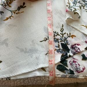 Floral Open Front Cover Up Medium. Preowned and in great condition. Floral print all over white background color. Open front and light weight. Please see all photos. Approx measurements in pictures.