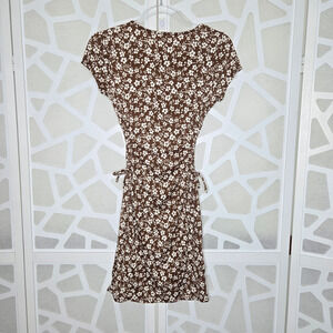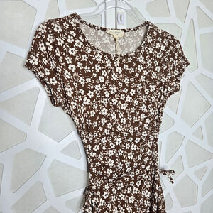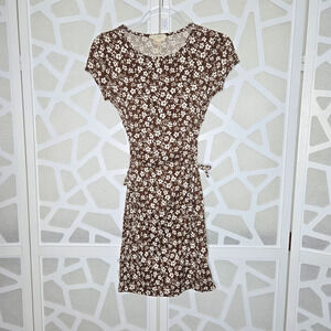 Jessica Simpson Brown Short Sleeve Floral Open Sides Mini Dress Size MD True Y2K Casual Cottage Ditsy Romantic Feminine Soft Girl Preppy Stretchy