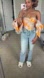 Elevate your style with this stunning floral new with tags bustier crop top with an extreme off the shoulder style in size 6 from ASOS Luxe. Featuring vibrant, metallic, orange jacquard hues, it's perfect for any occasion. It has built in light cups, extreme off the shoulder bell sleeves, and a back zipper. 9” length, 5” back length. It’s made of Polyester, metallised fibers, and nylon. It has