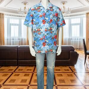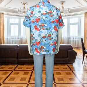 Men's Y2k Floral Orchid Flower Sky All Over Print Hawaiian Aloha Tropical Tribal Camp Shirt L