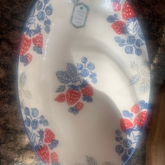 Elegant oval platter featuring vibrant red and blue floral designs. Perfect for enhancing your dining experience.