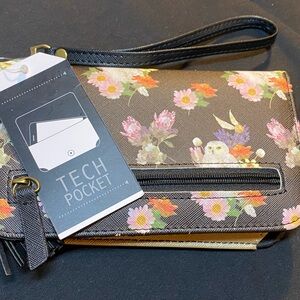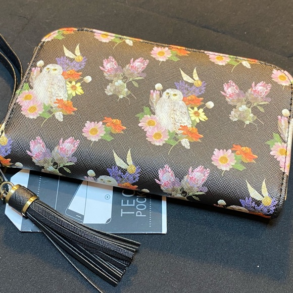 Chic Harry Potter inspired wristlet featuring a vibrant floral owl print. Perfect for adding a touch of whimsy to your outfit.