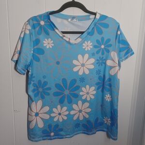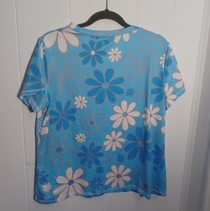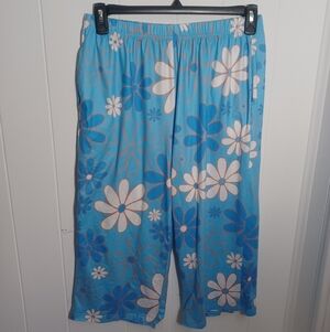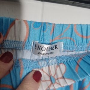 Ekouaer blue floral cottton pajama set. Elastic waist capri pants and short sleeve t-shirt.