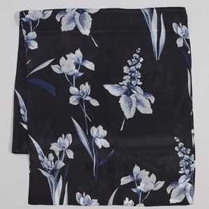 Brushwork florals lend elegance to this silk oblong scarf. Finished with a machine rolled hem, the classic design adds polish to an office outfit.