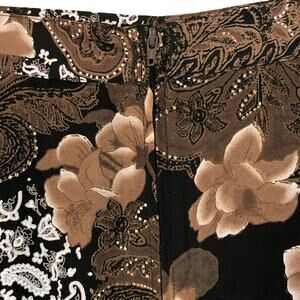 Floral Paisley Skirt Neutral in Black and Brown Lined Size 12 Vintage Retro 90s