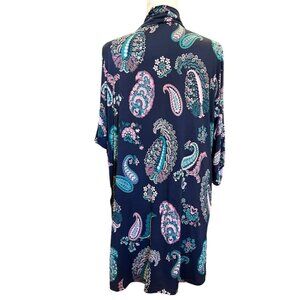 Floral Paisley Print Kimono Cardigan Size L By The ZigZag Stripe In Navy & Pink