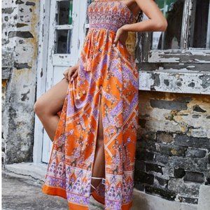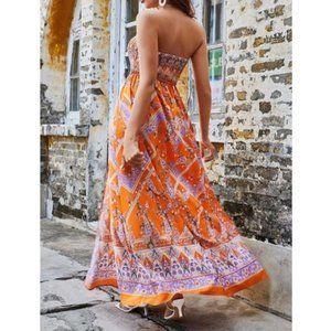 Floral & Paisley Print Shirred Hem Tube Dress