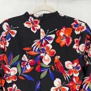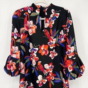 Floral Parrot Print Dress Keyhole Neckline Puff Sleeve Party Cocktail Size XL