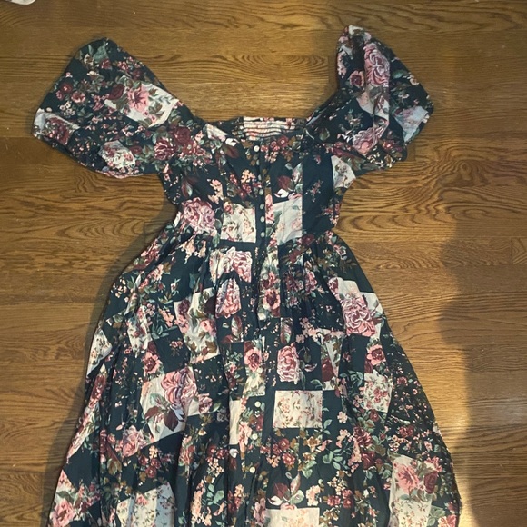 Floral Patchwork Maxi Dress with Puff Sleeves size 6