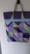This charming tote bag features a colorful patchwork design with floral patterns and green handles. Ideal for adding a touch of elegance to your daily ensemble.