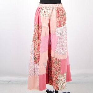 Embrace a bohemian vibe with these floral patchwork wide leg pants. Perfect for a casual day out, these pants feature a blend of pink hues for a stylish look.