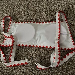 Brand new Pattern Bikini. Size small. Colors red, white, and blue. Adjustable straps and clasp.