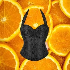 Floral Pattern Bustier Halter Top, Sexy Crop Backless Halter Top Size (8/10)