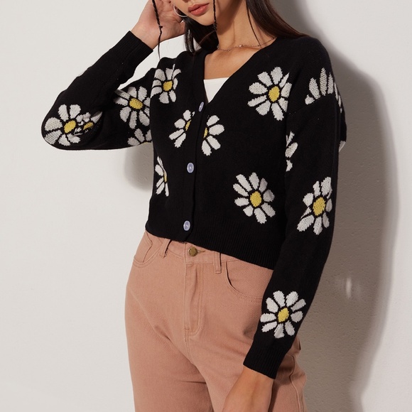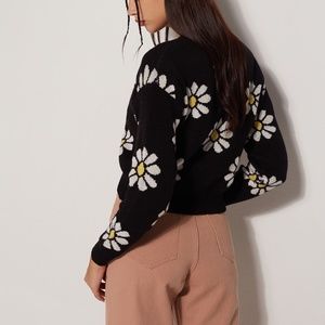 Black cardigan with white flowers, worn once with no tags
