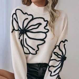 Floral Pattern Drop Shoulder Mock Neck Sweater